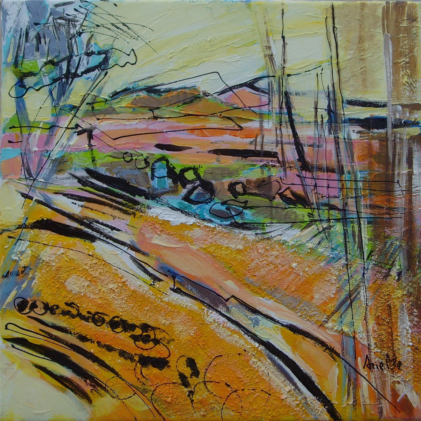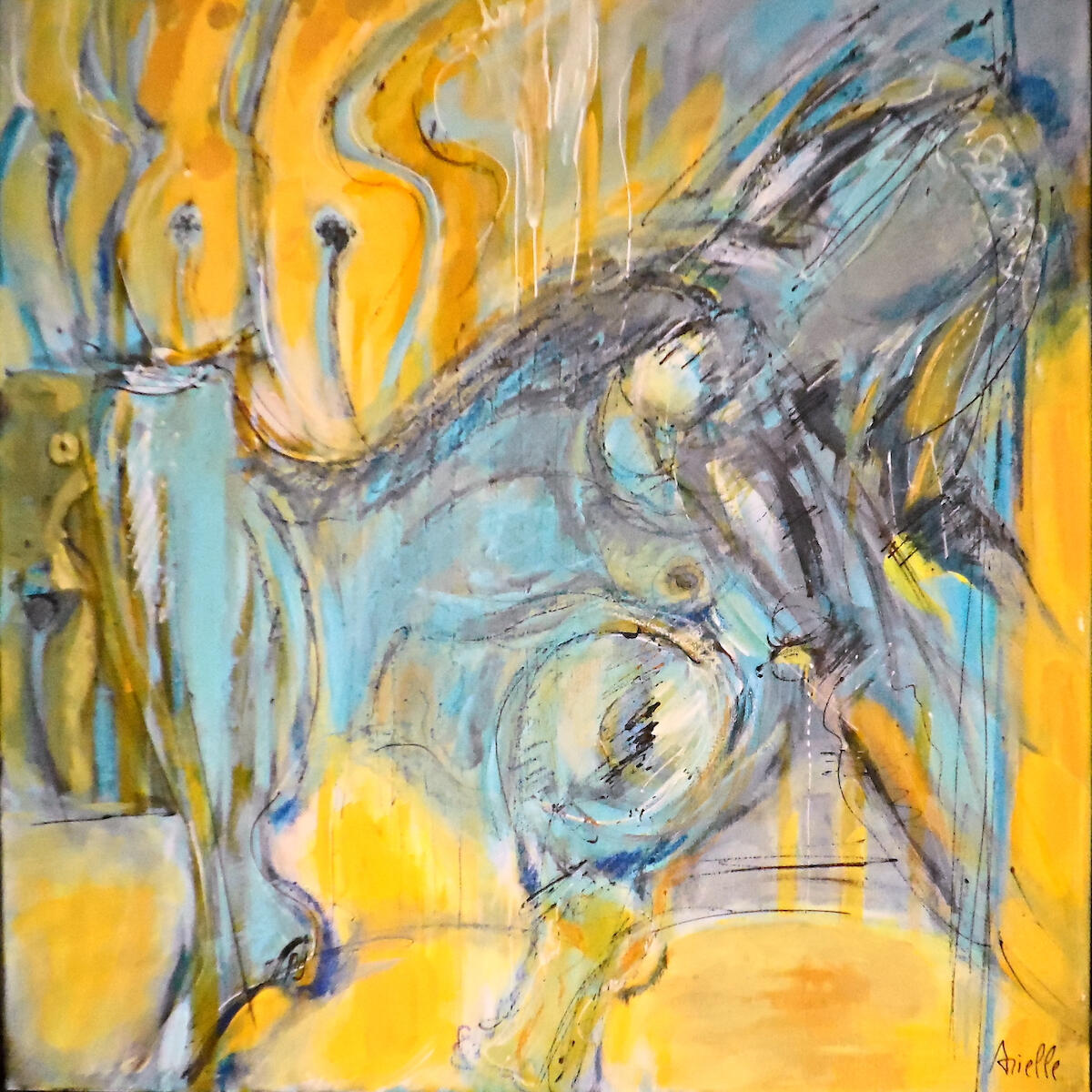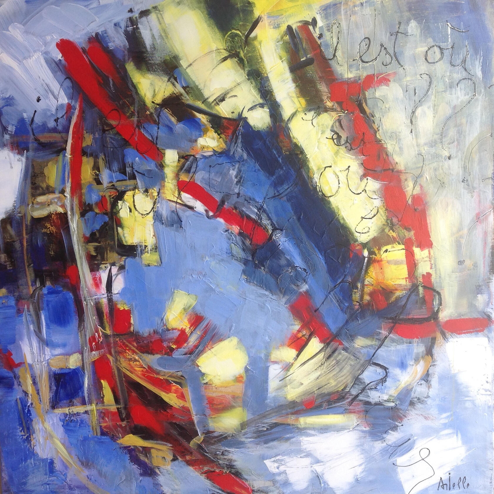 Ce nom deviendra sa signature d’artiste et l’accompagnera lorsqu’elle fera son entrée dans le monde professionnel, notamment lors d’une vente aux enchères à Drouot, avec une huile sur toile Paysage.Arielle peint depuis toujours comme on respire : en laissant parler les émotions.