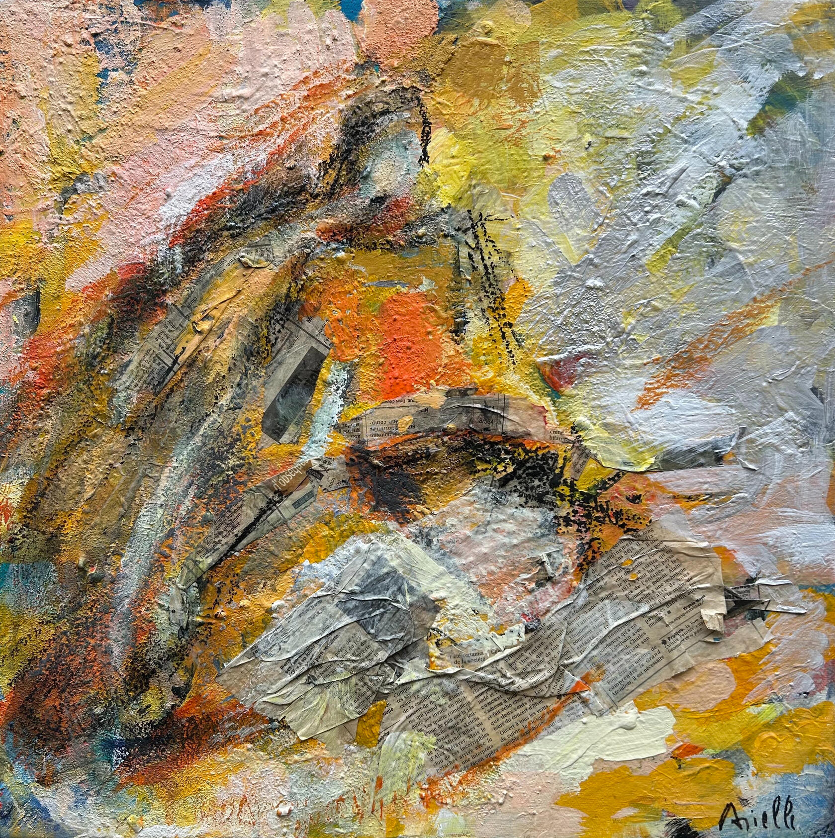 Acrylique et collage sur toile 80 x 80.